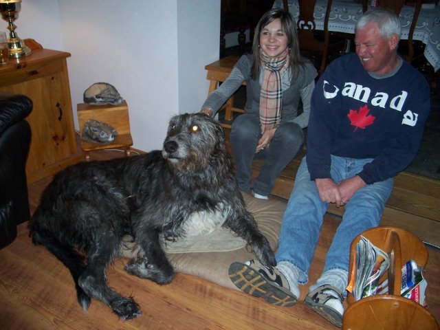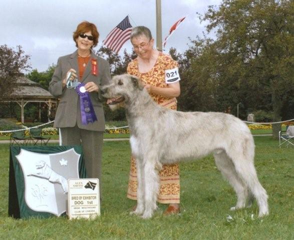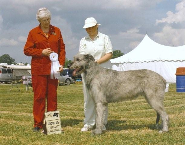 In July of 2007 Kia took another Best of Breed and Group 4th at the Limestone Kennel Dog’s All Breed Dog Show in Kingston.  He moved beautifully for me and despite the hot and humid weather once again proved the quality of Wolfhound he was.