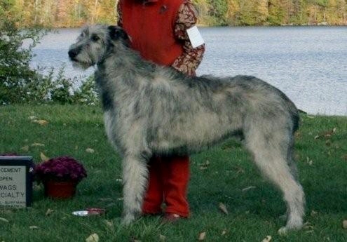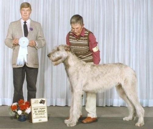 I originally co-owned my Kia Ora with Mrs. Daley of Aotearoa Irish Wolfhounds for the first couple years of his life and once I became the sole owner began showing him successfully myself.  He became the foundation sire for my current dogs.  Kia Ora means “Good Luck” or “Good Health” in Maori, the native language of New Zealand where Mrs. Daley originally came from.  Kia had outstanding conformation and an outgoing personality and was loved by the judges.