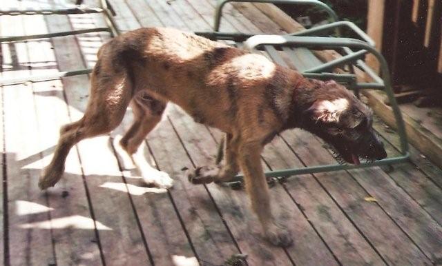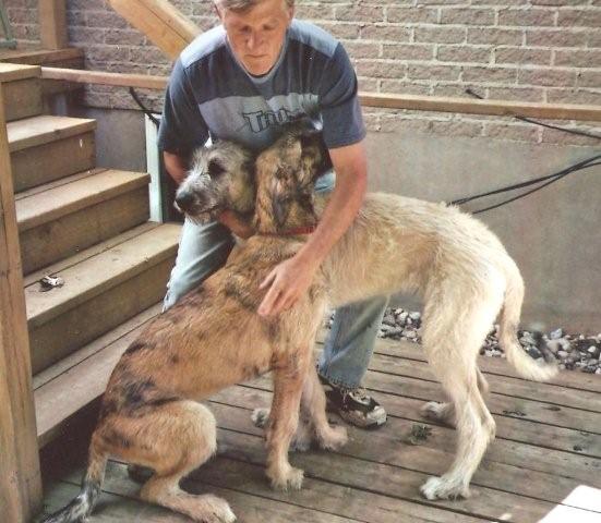 I bred my Aru to a nice bitch, “Hannah”.  She was a daughter of Barbara Daley’s Manuka and owned by Terri Duff.  Manuka was one of Barbara’s  top winning hounds and a half brother of my Kia Ora.  Here are is a photo of the offspring I chose to keep.  I named him “Olcan”, meaning “wolf “ in old Irish.  I cover his show career on his own page, but he shows more promise in outdoing his father!